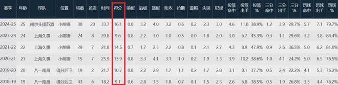 24-25赛季,在同曦队的郭昊文迎来了生涯巅峰,常规赛出战38场首发20次,场均上阵33.7分钟,贡献16.1分4板3.2助,帮助球队历史上首次杀进季后赛;然而在季后赛,郭昊文表现下滑严重,场均只有8分4.5板2.5助进账。