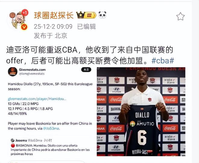 根据媒体赵探长报道,迪亚洛新赛季可能重返CBA,他收到了来自中国联赛的offer,后者可能出高额买断费令他加盟。都不用猜这支球队是谁了,CBA只有山西有迪亚洛的优先签约权,也只有山西这种土豪球队出得起这个价格。休赛季山西放走迪亚洛和古德温,新找的外援在试训后都不满意,还没开赛就裁掉了两位。新赛季CBA军备竞赛空前激烈,好外援更加难找,保险起见山西请回迪亚洛完全可以理解。迪亚洛在CBA还是能乱杀的,毕竟他的身体素质确实恐怖。