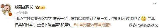 FIBA更新世预赛第二期实力榜:中国跌至倒数第2 日韩逼近澳大利亚