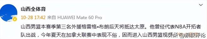 此外“山西全体育”的报道,山西男篮本赛季第三名外援格雷格•布朗后天将抵达太原。他曾经代表NBA开拓者队出战,今年夏天在加拿大联赛中表现不俗,因而进入山西男篮视野。