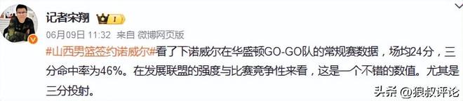 山西男篮另外一名外援为早早确定的诺威尔。他在华盛顿GO-GO队的常规赛数据,场均24分,三分命中率为46%。在发展联盟的强度与比赛竞争性来看,这是一个不错的数值。