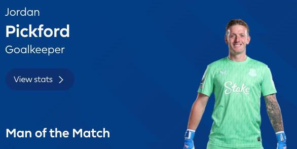 最终经过英超官网球迷投票,皮克福德以53%的得票率当选全场最佳球员。