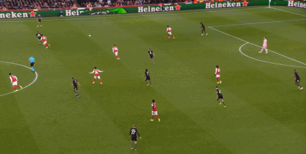 在这场比赛,萨卡的无球位置依然很深,防守职责依然很重: