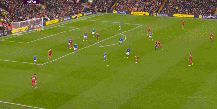 首先,由于阿隆索在勒沃库森时期主打三后卫,所以进攻宽度天然可以由翼卫拉开,利物浦当然也会如此行事,只不过是由两侧的进攻球员来拉开宽度。