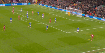 但在维尔茨的顺足方向,也就是右半扇,勒沃库森时期这里有一个靠速度和爆发力形成了很强的一对一能力的弗林蓬,但在利物浦,这里是一个主打拿球进攻,而且因为年龄增加,身体能力下滑的萨拉赫。