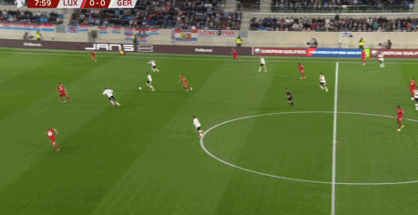 开场仅8分钟,维尔茨便获得良机,当时德国队打出快速反击,队友禁区内为维尔茨送出横传,但维尔茨面对如此近距离良机,他跟进的推射却因为角度太正,被卢森堡门将轻松扑出。